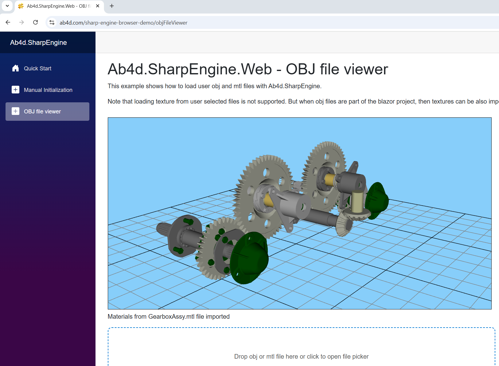 Ab4d.SharpEngine is a general purpose 3D rendering engine that is perfect for any engineering, technical, scientific, architectural or other application that shows 3D graphics. It is highly optimized to achieve the best performance and superior image quality.